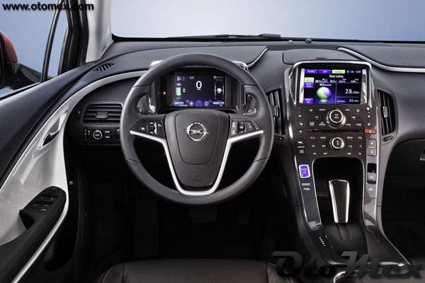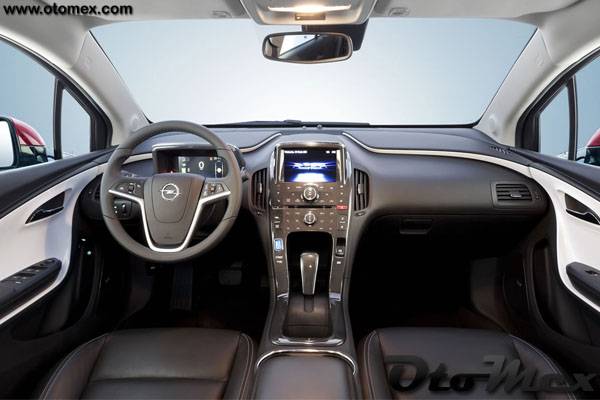Ampera’nın kabini, 2008’de Opel Insignia ile başlatılan Opel’in yeni tasarım dilinden etkiler taşıyor. Ancak Ampera’nın Opel portföyündeki konumu yeni bir sürüş arayüzü sağlayan iki adet 7” yüksek çözünürlüklü interaktif renkli ekranın dahil edilmesiyle vurgulanıyor. Kabinde Jat Black deri koltuklar standart olarak bulunuyor ve ön konsol Dark Argent metalik renginde. Kapı ve koltuk giydirme eklentileri için üç farklı renk seçeneği mevcut: Buzlu Nikel, Baharat Kırmızısı ve Seramik Beyaz.
